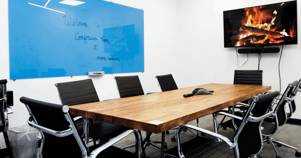 Our meeting rooms give you a focused, professional space to collaborate within our shared environment. Set up the room to fit your agenda, meet clients with confidence, and get work done without distractions. Ideal for interviews, team sessions, or client presentations, it blends the energy of our community with the reliability of a private room that’s ready when you are.