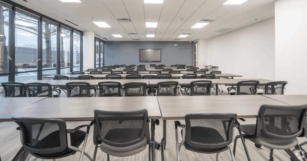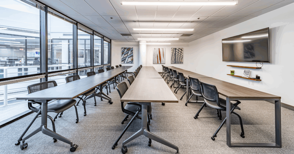 A training room is built for hands-on learning, team development, and group instruction. These rooms offer flexible layouts, screens, whiteboards, and reliable WiFi to support workshops, classes, onboarding sessions, and collaborative training events. Designed to minimize distractions and maximize engagement, training rooms give teams the structure and tools they need to learn and work efficiently.