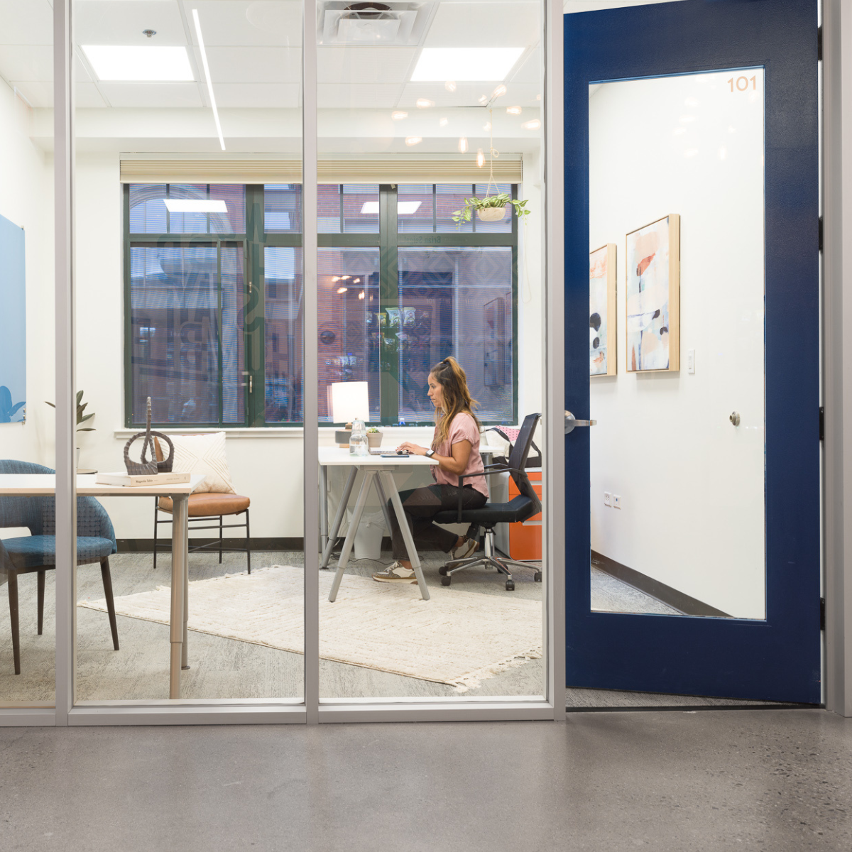 The fully furnished shared space consists of private offices starting at $450/mo, collaborative coworking spaces starting at $125/mo, professional meeting rooms starting at $30/hour, virtual business addresses starting at $65, and all the necessary amenities, including Wi-Fi with a fast internet connection, secure 24/7 access to the building, on-site assistance, a community kitchen, bike storage, and more!