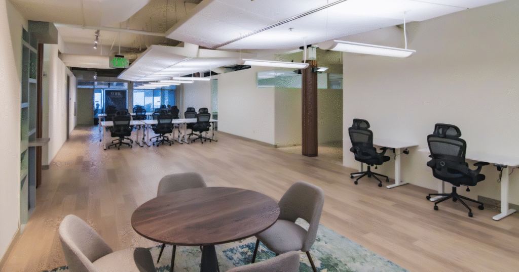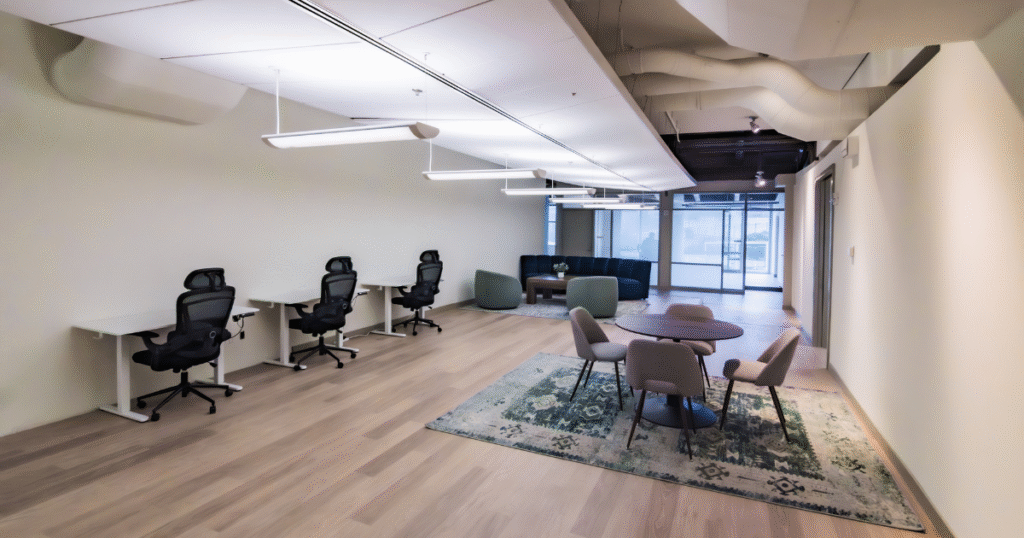 A dedicated desk gives you your own reserved workstation in a shared workspace, plus high-speed WiFi, 24/7 access (varies by membership type), member rates, business-class printing, and access to all common areas.