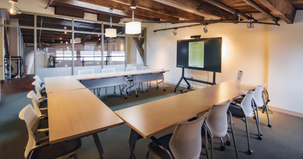Our meeting rooms give you a focused, professional space to collaborate within our shared environment. Set up the room to fit your agenda, meet clients with confidence, and get work done without distractions. Ideal for interviews, team sessions, or client presentations, it blends the energy of our community with the reliability of a private room that’s ready when you are.